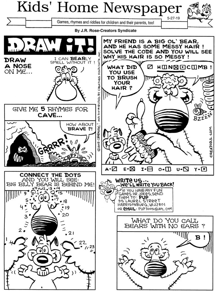 Since 1991, Rose has also drawn the 'Kids' Home Newspaper', a weekly activity page hosted by an anthropomorphic dog called Pup, distributed by Creators Syndicate. Episodes have been collected in books like 'Fun With Pup!' (1996), 'More Fun With Pup!' (1998) and 'Christmas Fun With Pup!' (2000) by Pelican Publishing Co. John Rose has additionally illustrated children's books.