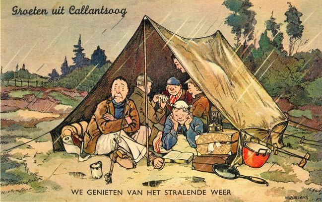 From the late 1940s until the early 1960s, Rotgans illustrated many humorous holiday postcards, depicting camping situations, transportation issues and Dutch towns. The publisher was presumably Mes en Bronkhost. Rotgans additionally made a new series of postcards with military humor.