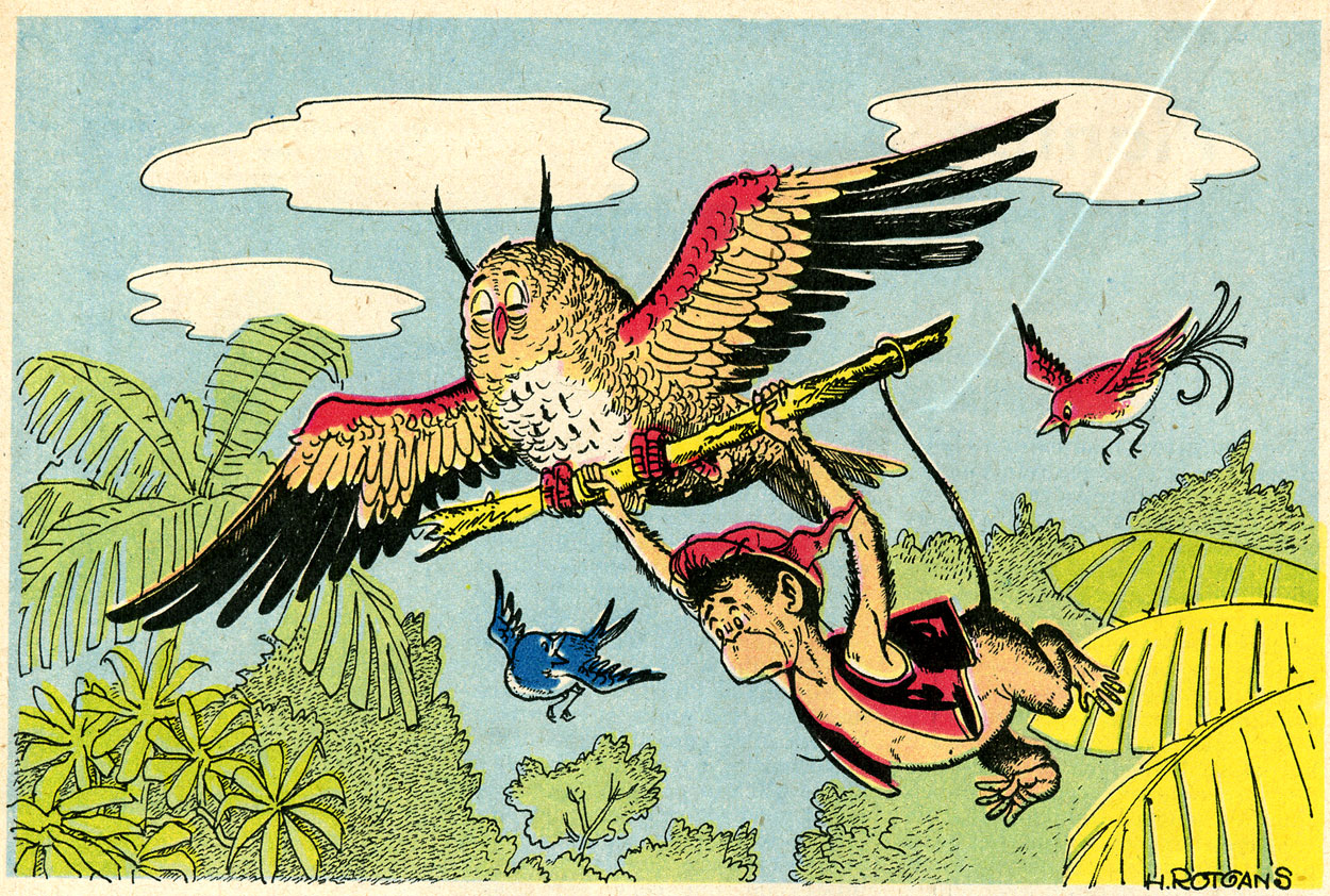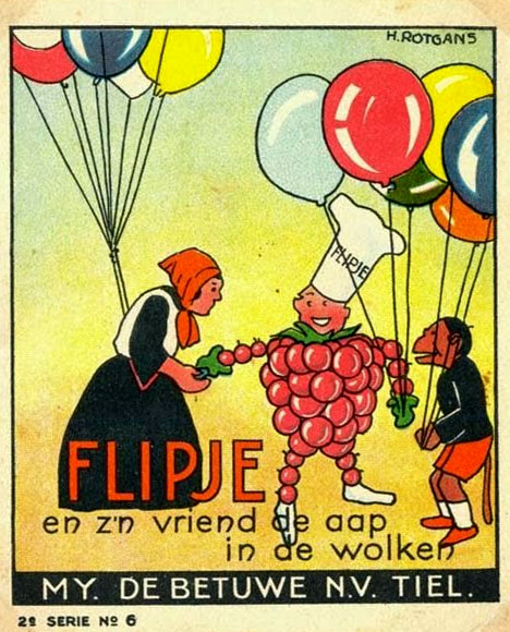 After graduation, in 1935, Rotgans began his enduring collaboration with the publishing house De Spaarnestad in Haarlem. He made many drawings and illustrations for the company's humor magazine De Humorist, but also for the weekly Panorama. Around the same period, he succeeded Daan Hoeksema as the artist of advertising booklets for jam factory De Betuwe in Tiel. Rotgans was the first to draw adventures starring the factory's little fruit mascot with chef's hat, 'Flipje' (1935). While Flipje was originally created by the Van Alfen advertising agency, it was Rotgans who gave the little raspberry man a monkey friend in red shorts, later known as Jasper. After four booklets, Rotgans passed the pencil to Eelco Harmsen van Beek and his wife Freddie Langeler, who gave the character and his magical environment their definitive shape.