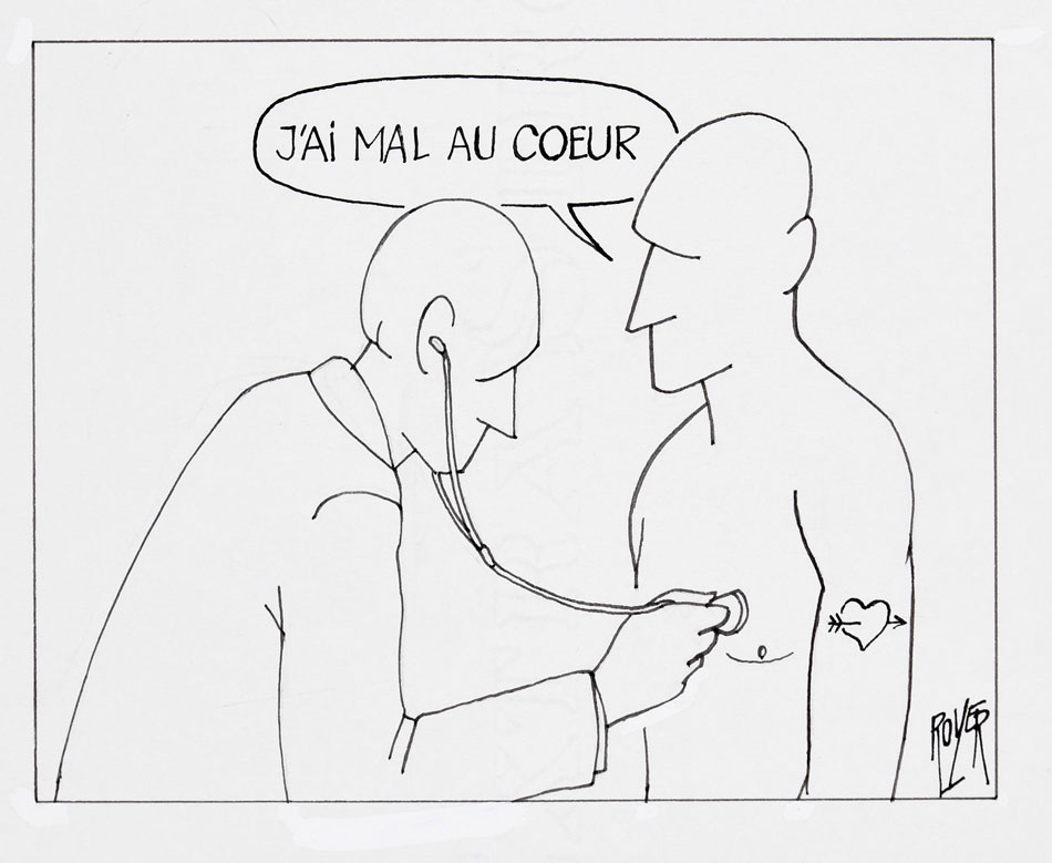 Cartoon by Royer. Translation: "My heart hurts."