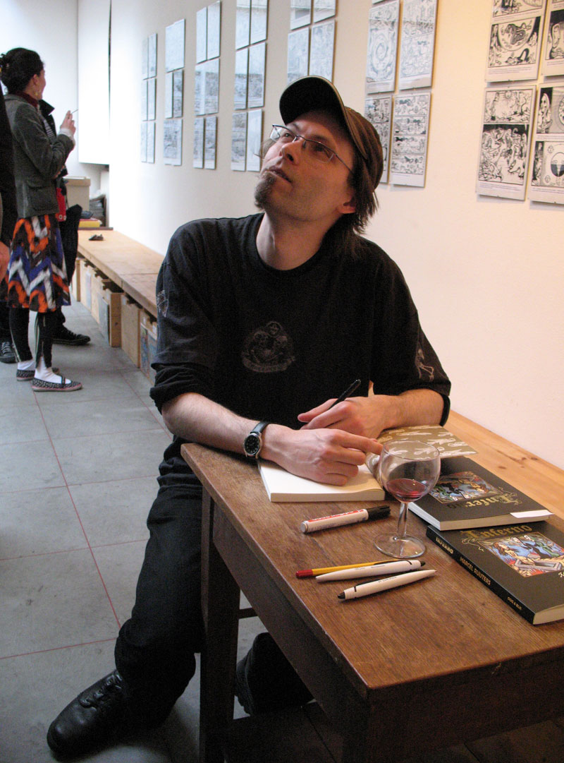 Marcel Ruijters signing at the opening of his 'Inferno' exposition at Gallery Lambiek (25 April 2008). He signed in our store again on 7 June 2024.
