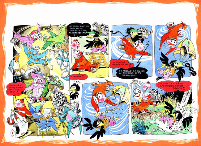 Lívia Rusz broke into the Romanian comic scene with 'Fluierasul si ulciorul' (1966), published in Arici Pogonici, and 'The Wizard of Oz' in Cravata Rosie. Children were entertained in Luminita with the stories of 'Kio', the monkey, scripted by Ovidia Zotta (1967). 'Dan Buzdugan', a realistic chivalry comic story debuted and ran both in Cutezatorii and Luminita at the same time.