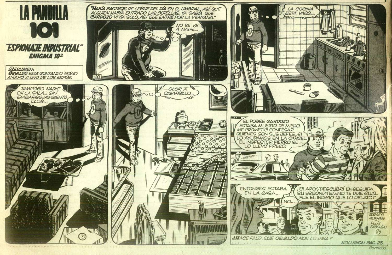 During the same period, Saborido worked for Editorial Cordura, the publisher of the newspapers La Hoja del Lunes and La Hoja del Jueves. He served as art director for the children's supplement La Hojita, for which he additionally made sports illustrations and the crime riddle comic 'La Pandilla 101' with scriptwriter Jorge Morain. He was also art director of the children's magazine Gattín y el Equipo of Editorial Tamar in 1978.