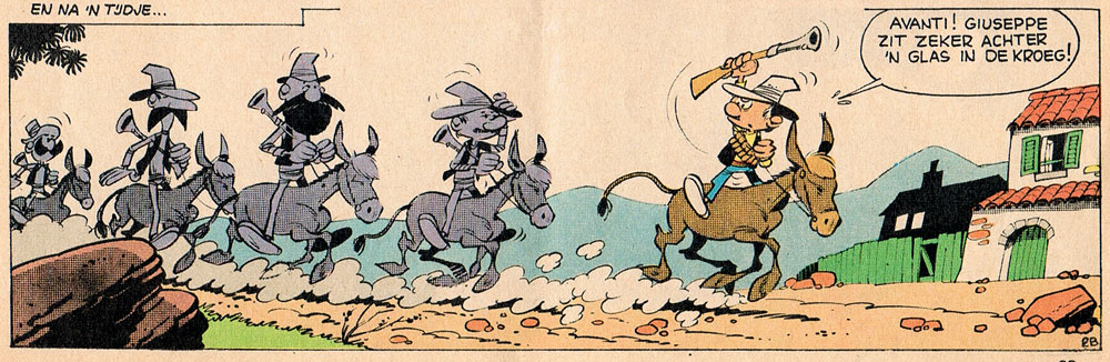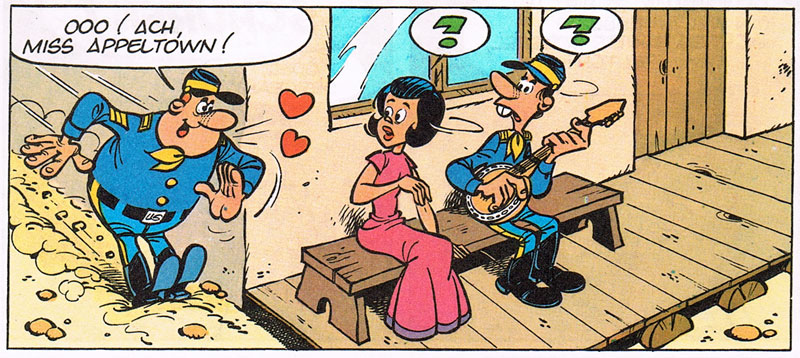 Panel from an early 'Les Tuniques Bleues' short story. Dutch-language version.