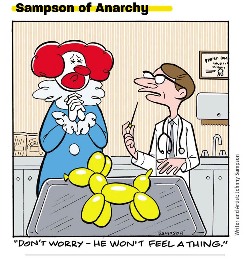 Still, Sampson joined Mad Magazine at a time when the sales figures were going drastically downhill. On 4 July 2019, it was announced that the magazine would no longer be distributed in regular stores. To save costs, it would rely mostly on reprint material, with new, original content becoming scarcer. Indeed, slowly but surely most of the veteran contributors retired or went to other publications. By 2021, Sampson, Sergio Aragonés and Peter Kuper were the only people still producing new articles and comics. In the February 2021 issue, Aragonés said his farewell. Sampson paid tribute with the fold-in: 'How does Sergio Aragonés come up with so many marginals?'. One issue later (April 2021), Kuper left as well, consequently meaning the end of 'Spy vs. Spy'. Again, Sampson paid homage with a fold-in: 'When is a spy not a spy?'. Since then, Johnny Sampson is the only regular contributor left in Mad's pages; the "usual gang of idiots" reduced to just one. Sampson is fully aware of this sad fact, called himself the "Last Idiot Standing", but is determined to continue until the end.