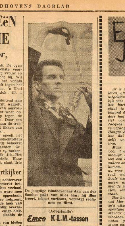Jan van der Sanden as filmmaker, presented in Eindhovens Dagblad of 10 November 1960.