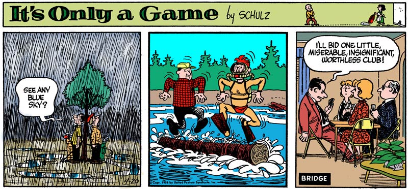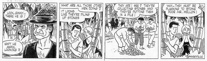 Sasseville also assisted Charles M. Schulz with his short-lived sports comic 'It's Only a Game' (1957-1959), syndicated on Sundays and three weekdays by United Features from November 1957 to January 1959. From 1958 on, he was basically the sole creator of 'It's Only a Game'. Sasseville never received credit for his contributions, but was still paid better than at his actual job at the Art Instruction School. However, in 1959 Schulz decided to drop 'It's Only a Game', since it was never a big hit, difficult to combine with 'Peanuts' and because he had nothing to do with it anymore. This decision caught Sasseville completely by surprise and caused such friction that the collaboration between Sasseville and Schulz ended altogether. Schulz then hired another assistant, Dale Hale, for the 'Peanuts' comic book stories. Neither Schulz nor Sasseville ever spoke to one another again. A complete collection of 'It's Only a Game' was edited and published by Derrick Bang in 2004. A new edition called 'It's Only a Game: The Complete Color Collection' was released in 2013, with Sasseville receiving cover credit.