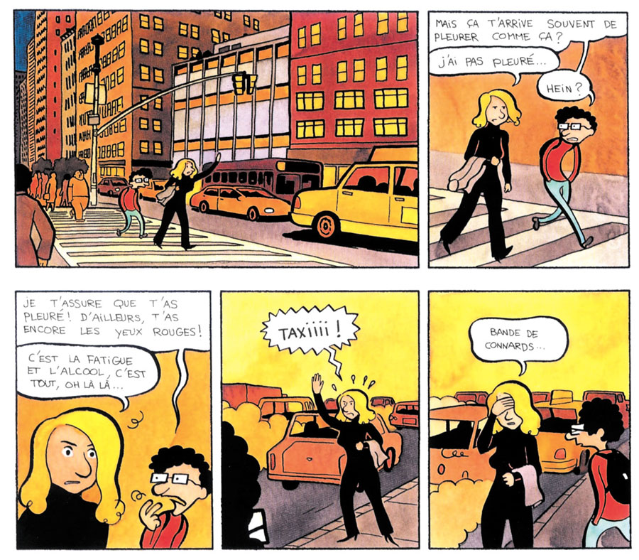 Inspired by his new creative environment, Sattouf assumed a comical drawing style, and created 'Les Jolis Pieds de Florence', a tragicomical story about a loser who designs video games, his strange friends and his ill-fated attempts at finding love in modern-day France. Published in 2003 in the Poisson Pilote collection of Éditions Dargaud, the book received positive reviews, and two more volumes of 'Les Pauvres Aventures de Jérémie' ("The Misadventures of Jeremy") followed in 2004 and 2005. In between, Sattouf created two autobiographical picture books for Joann Sfar's imprint Bréal Jeunesse. 'Manuel du Puceau' ("Virgin Manual", 2003) gave a humorous look on the agonies of adolescence, and in 'Ma Circoncision' (2004), Sattouf told about his circumcision at age eight. In the Summer of 2004, Sattouf went to the USA to report about the locust plague in Texas for Libération magazine. But instead of going to Texas, he stayed in New York City, where he chronicled the loneliness and sexual misery of his young contemporaries. In 72 pages, he reported about the French community in New York, commando girls, free enterprise, the post-9/11 sex appeal of New York firefighters and the good organization of a date. After their publication in Libération, these comics were collected in the book 'No Sex in New York' (Dargaud, 2004).