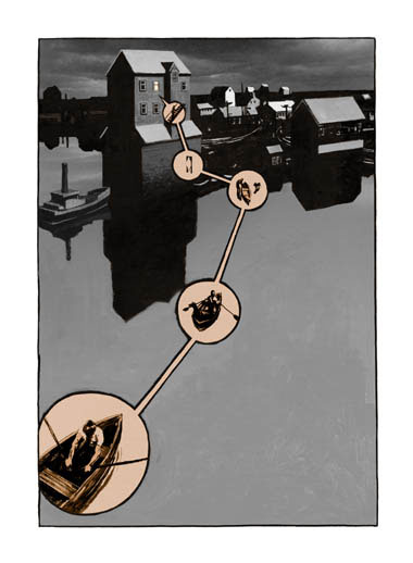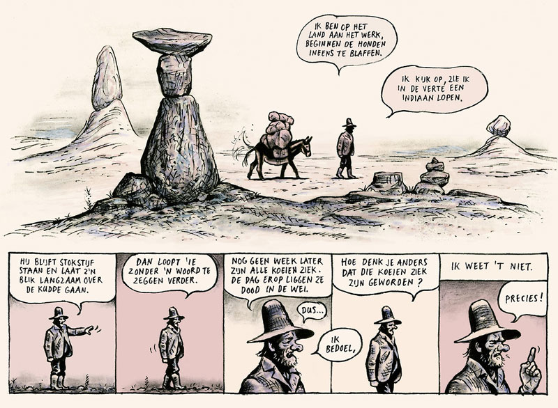 The inventiveness and maturity that characterize the Eiland comics can also be seen in the duo's other works. Schalken makes sculptures, videos, interactive installations, illustrations for stories and articles in newspapers and magazines, and also paintings. A solo effort by him was published by Bries in 2003, called 'Eiland Presents: Balthazar Part 1'. It offered a clever mix of medieval prints, 1960s science fiction book covers and details of Renaissance painting. A collection of Schalken's sculptures, short strips, drawings, paintings, sketches and background articles, called 'The Heart Of The Matter' was published by d'Jonge hond/WBOOKS in 2010. His work has appeared in such publications as Zone 5300 (The Netherlands), Lapin (France) and Strapazin (Switzerland).