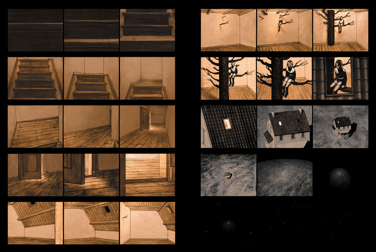 On the level of content, the avant-garde comic anthology 'Eiland' stood out for Van Dinther's poignant graphic experiments and Schalken's poetic paintings. After the first 'Eiland' , the duo was joined by Erik van der Heijden, which led to the sequel 'Eiland' (1988). Bries published the third and fourth Eiland in 2000 and 2001, while a fifth installment was published by the French publisher Frémok in 2010. With every new 'Eiland', Schalken and Van Dinther kept on growing to new heights. This is vividly illustrated by their remarkable contributions to the international comic anthology Comix 2000 from the renowned French comic publisher L'Association.