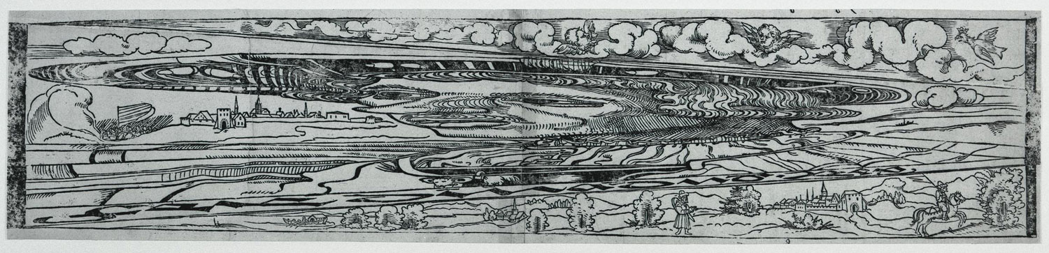 Several of Schön's woodcuts were based on recent events, a forerunner of today's newspapers. In the 16th, 17th and 18th century these so-called 'Geschichtsblätter' ("Pages about Events") were very popular. They portrayed battles, massacres, public executions, natural disasters and other atrocities. Schön, for instance, visualized the Sieges of Vienna (1529), Münster (1534-1535) and Budapest (1541). He had equal interest in a miscarriage in Augsburg, which resulted in the birth of a human-animal hybrid (1532) and a witch burning in Schulta (1533). But audiences also loved graphic reports about festive city visits by royals and noblemen, royal marriages and state funerals. Schön was just one of several artists who made such drawings. Other creators included Johannes van den Aveele, Jeremias Gath, Frans Hogenberg, Romeyn de Hooghe, Bartholomäus Käppeler, Caspar Krebs, Georg Kress, Hans Rogel the Elder, Hans Rogel the Younger, Der Prager Meister von 1609, Johann Schubert, Hans Schultes the Elder, Lucas Schultes and Elias Wellhöfer.