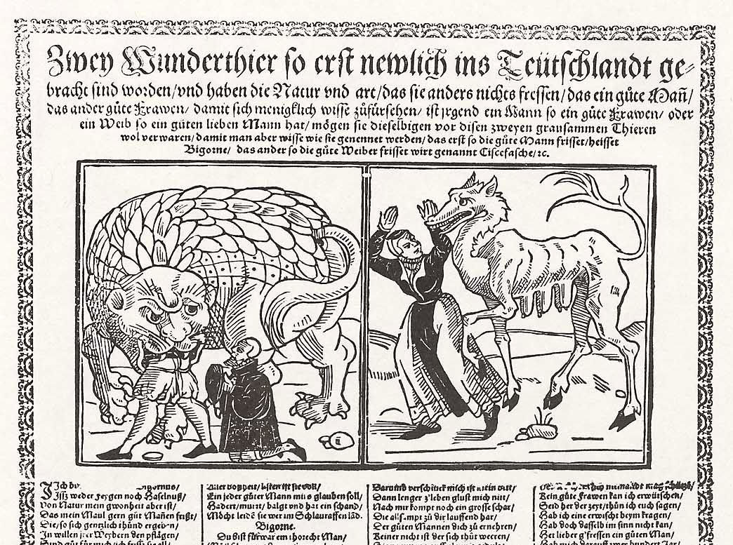 'Zwei sonderbare menschenfressende Tiere ("Two Wondrous Man-Eating Animals", 1586).