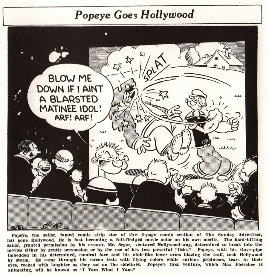 Promotional artwork for the 'Popeye' animated cartoons, 1933.