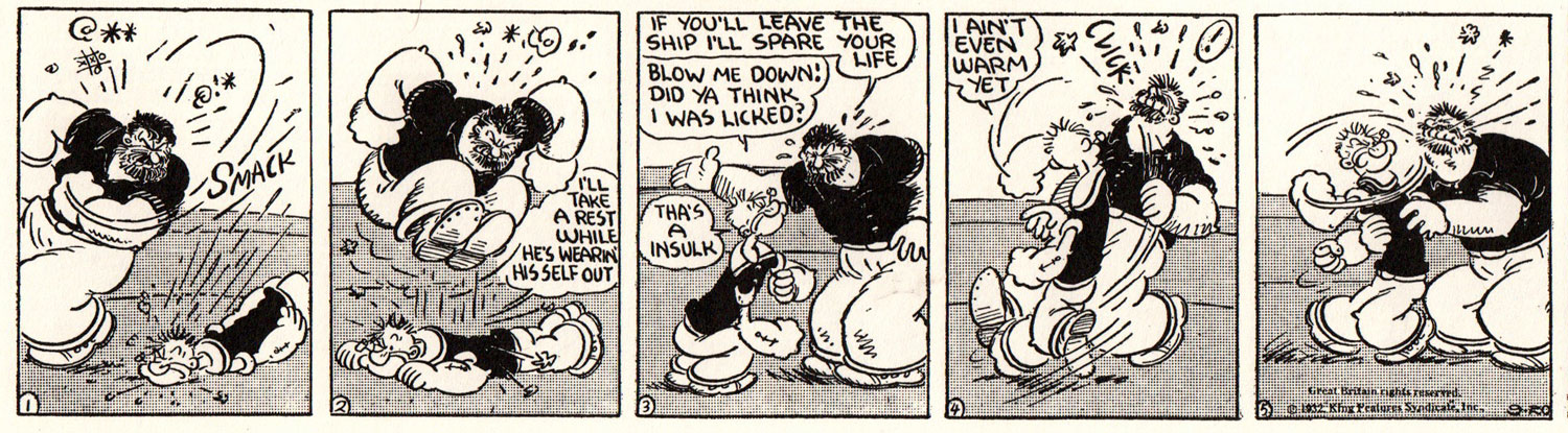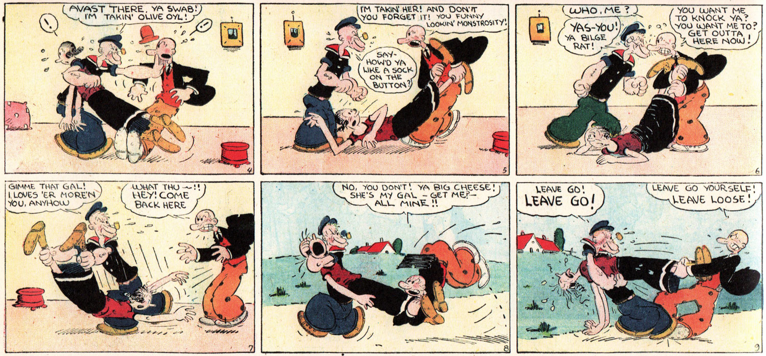 Early on, Popeye still had to fight Ham Gravy over Olive Oyl's affections (9 March 1930).