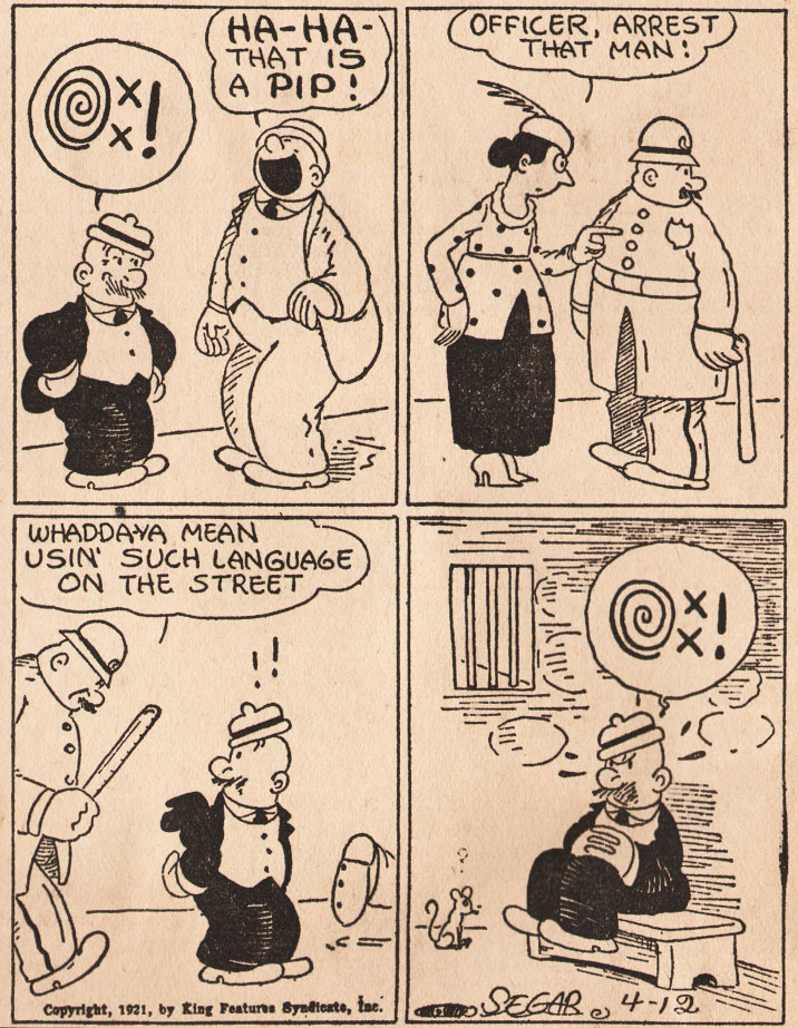 Early appearance of Popeye in the Thimble Theatre strip (18 January 1929).