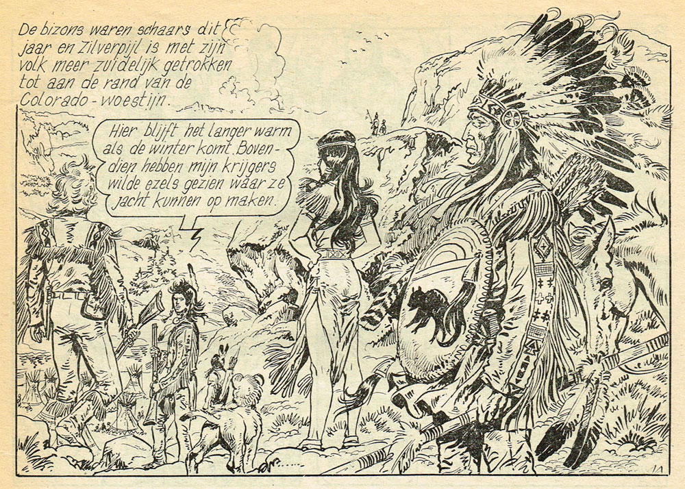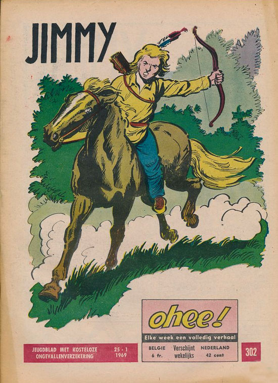 Since 1964, Frank Sels had additionally provided regular comics to Ohee!, the magazine with a weekly full comic story, published by newspaper Het Volk. A recurring Sels feature was the Viking comic 'De Zeearend', which appeared in five Ohee! issues between 1964 and 1968. By June 1965, Ohee! was filled with a Sels comic at least once a month. These were mostly historic adventure comics, scripted by Lorenzo Wadlin or Sels' childhood friend Hugo Renaerts. Among the titles were 'Mister Grizzly', 'Abraham Lincoln', 'De Illias' and 'Tall Bull'. Another recurring character was the jungle hero 'Tarbu, de jongen van de jungle' (three stories, 1969).
