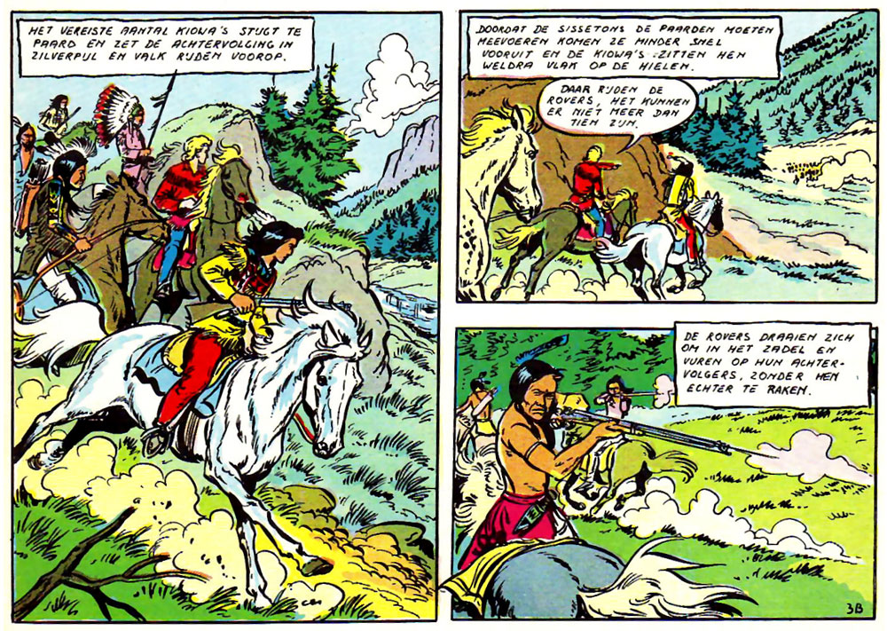 'Silberpfeil' was a great success. Many stories appeared in Dutch as 'Zilverpijl' in the magazines Ohee! and Ohee Club, with cover illustrations by Robert Wuyts (the German books had covers designed by the Spanish Studio Ortega). Additional translations followed in Norwegian ('Sølvpilen'), Swedish ('Silverpilen') and Finnish ('Hopeanuoli'). During the 1970s and 1980s, Sels made several attempts to self-publish Dutch-language album series, but all failed after two or three volumes. In these later reprints, precursor 'Kleine Antilope' often appeared under the name 'Kleine Wapiti'.