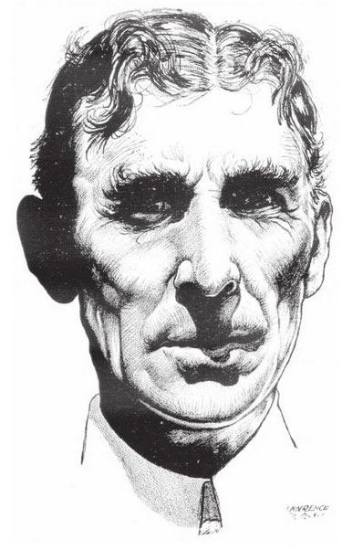 Caricature of baseball player and team owner Connie Mack (ca. 1915).