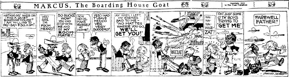 Between 24 December 1912 and 29 March 1913, Semon created 'Marcus the Boarding House Goat' which appeared in the New York World. In 1913, he performed some of his sports cartoons on stage as part of a vaudeville act, without much success. He also created a few advertising comics, among others for Tuxedo tobacco.