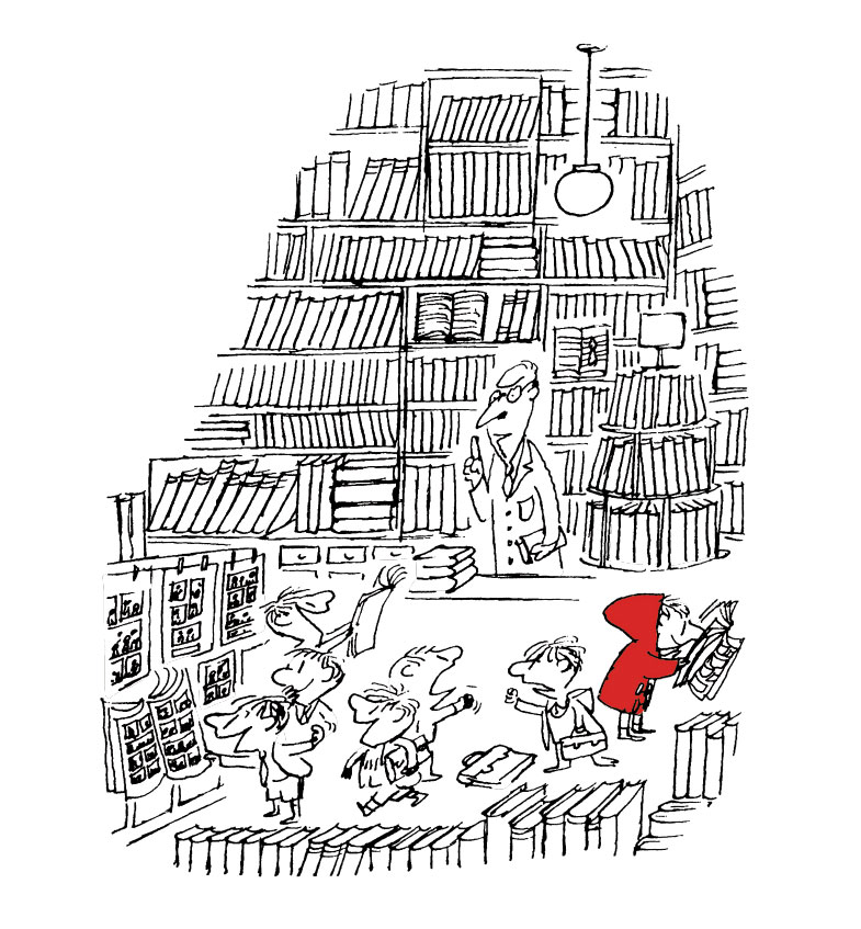 During the 1950s, Jean-Jacques Sempe's cartoons appeared in an increasing number of magazines, including Constellation (1954-1960), Almanach Vermot (1955-1960) and Marie-Claire (1959-1964). A prominent new client was the illustrated weekly Paris Match, for which Sempé made page-filling cartoons with ornate captions, first between 1957 and 1967, then again between 1988 and 2000. Over the next couple of decades, drawings by Sempé ran in Télérama, Le Nid, Lui, L'Express, Le Nouvel Observateur and Je Bouquine. In the second half of the 1950s, he also found success abroad, with publications in Punch (UK) and Esquire (USA). In 1978, he was asked to submit cover drawings to The New Yorker magazine, which he did for over forty years, making over a hundred contributions. Besides magazine cartoons, Jean-Jacques Sempé also illustrated posters, advertisements, postcards and stickers, as well as books by William Makepeace Thackeray ('The Book of Snobs', 1963), Graham Cleverley ('Managers and Magic', 1971), and the two physicists Richard L. Garwin and Georges Charpak ('Megawatts + Megatons', 2001). Following the success of 'Le Petit Nicolas', publisher Denoël has also released over 25 book collections with Sempé cartoons, starting with 'Rien N'est Simple' (1962), 'Tout Se Complique' (1963) and 'Sauve Qui Peut' (1964).