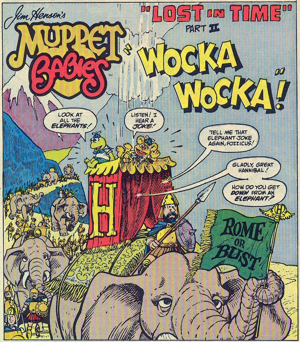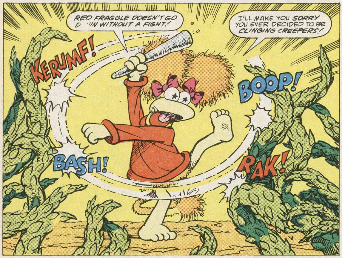 In the 1980s, Marie Severin was assigned to Marvel's Special Projects department under Sol Brodsky and John Romita Sr. This division handled any non-comic book licensing job, from toy maquettes to designing movie costumes. One of their projects was developing coloring books and sticker books for the short-lived Marvel Books imprint. The team also set-up comic books which tied in with movie and television franchises. Severin drew the first of three comic books based on the TV series 'The A-Team' (1984), the other issues were drawn by Jim Mooney and Alan Kupperberg, respectively. With Larry Hama, Severin made the 28th issue of the comic book related to Hasbro's 'G.I. Joe' toy-line and its animated TV show. Her main body of work during the 1980s was however penciling, inking and coloring comic books for Marvel's children's comics imprint Star Comics. These were series based on the TV series 'Fraggle Rock' (8 issues, 1985-1986) and 'Jim Henson's Muppet Babies' (26 issues, 1985-1989 and 6 issues in 1993-1994), both with writer Stan Kay.
