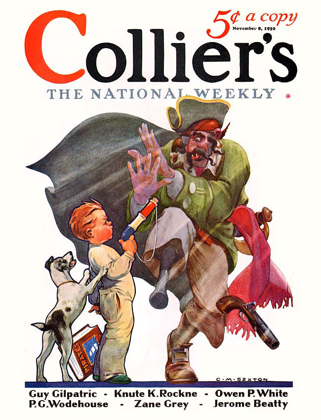 Cover drawing for Collier's magazine (8 November 1930), and a fashion illustration by C.M. Sexton.