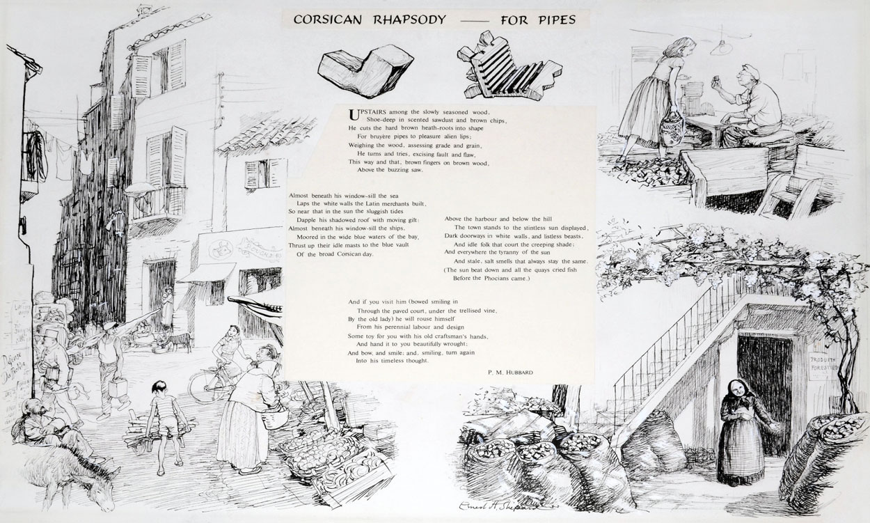 Illustrations for 'Corsican Rhapsody For Pipes' by P.M. Hubbard (Punch, 22 November 1950).