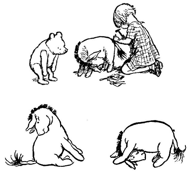 Sequential illustrations from 'Eeyore loses a Tail' (1926).