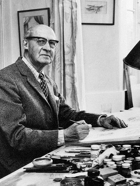 Shepard published his autobiography 'Drawn from Memory' (1957), followed by a sequel, 'Drawn From Life' (1961). In 1969, he donated 300 of his preliminary 'Winnie-the-Pooh' sketches to the Victoria and Albert Museum, while in 1972 he donated his personal archives to the University of Surrey. Ernest Howard Shepard passed away in 1976 in Midhurst, at age 96. His children Graham Shepard (1907-1943) and Mary Shepard (1909-2000) became well-known illustrators in their own right. Graham was a cartoonist for The Illustrated London News, while Mary gained fame as the original illustrator of the P. L. Travers novel 'Mary Poppins' (1934). In the biopic 'Goodbye Christopher Robin' (2017), directed by Simon Curtis, E. H. Shepard was portrayed by Stephen Campbell Moore.