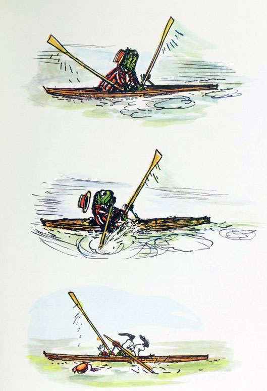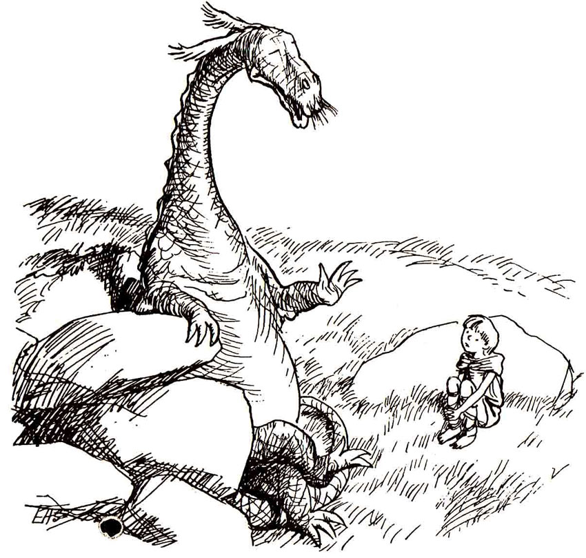 Through A. A. Milne, Shepard was also introduced to Kenneth Grahame, the famous author of the short story 'The Reluctant Dragon' (1898) and the novel 'The Wind in the Willows' (1908). Ernest Shepard made the illustrations for two reprints of these stories. 'The Reluctant Dragon', about an apparently fierce dragon who turns out to be nice and friendly, had been graphically interpreted before, most notably by Maxfield Parrish. The same applied to Graham's signature novel 'The Wind in the Willows', for whom previously Paul Bransom, Nancy Barnhart and Wyndham Payne had livened up the pages with their illustrations. But Grahame wasn't satisfied with the previous illustrators, since they made his characters look like "puppets". He therefore asked Shepard to do the job, who later recalled: "I was more excited when they offered me that than Pooh." Grahame and Shepard often went out for walks in Pangbourne, near the banks of the river Thames. The setting inspired much of the atmosphere Grahame wanted Shepard to convey in the drawings. He was very pleased when he saw the first preliminary sketches and commented: "I'm glad you made them real." Sadly, Grahame didn't live to see the publication of the 1931 reprint, which contained Shepard's finished artwork. However, many readers regard this version the definitive visualization of the adventures of Mr. Toad, Badger and Mole. All later illustrators have taken cues from Shepard's idyllic artwork. Interestingly enough, much like Winnie-the-Pooh, the Walt Disney Company later also adapted 'The Reluctant Dragon' (1941) and 'The Wind in the Willows' (as 'The Adventures of Ichabod and Mr. Toad', 1949) into animated shorts. It has not been recorded how Shepard felt about these films, if he saw them at all.