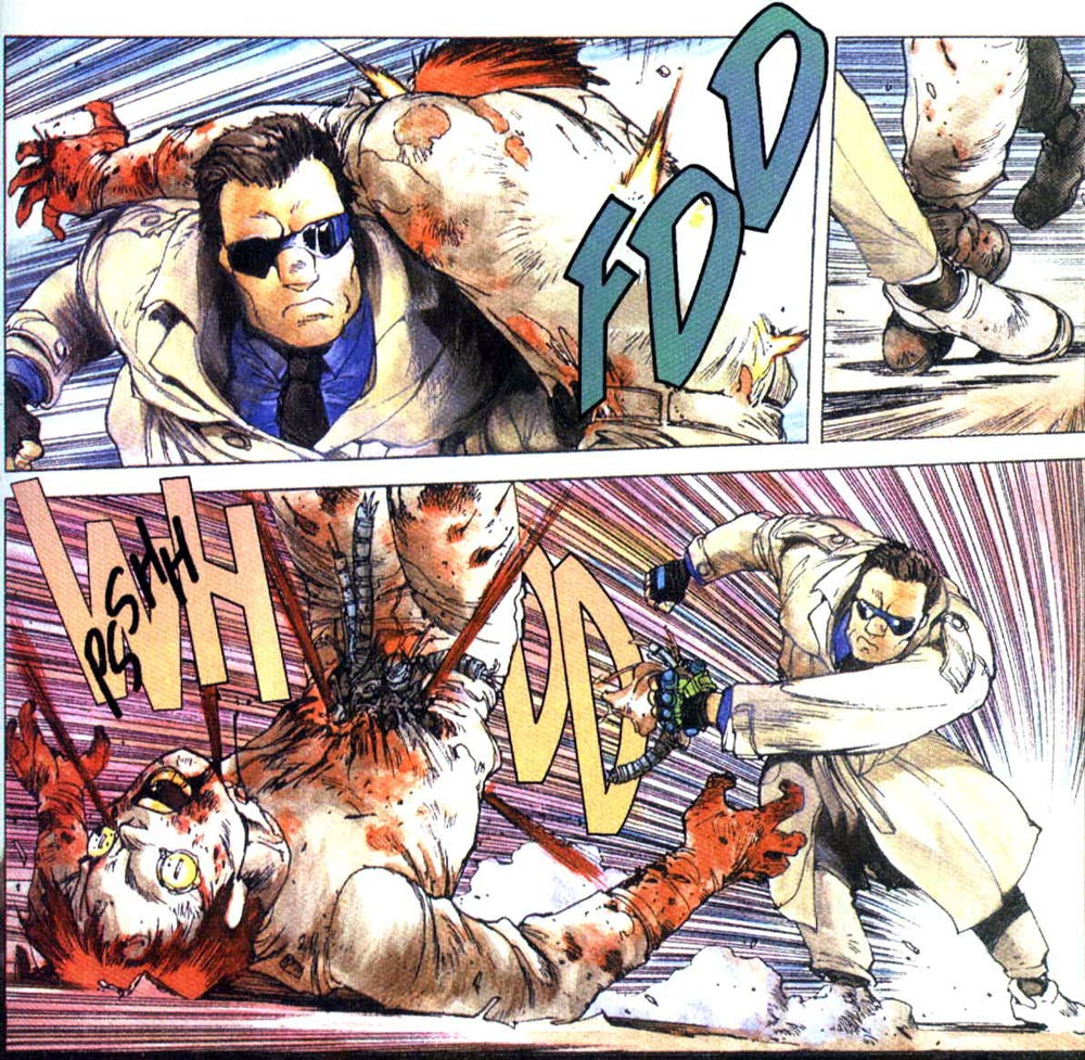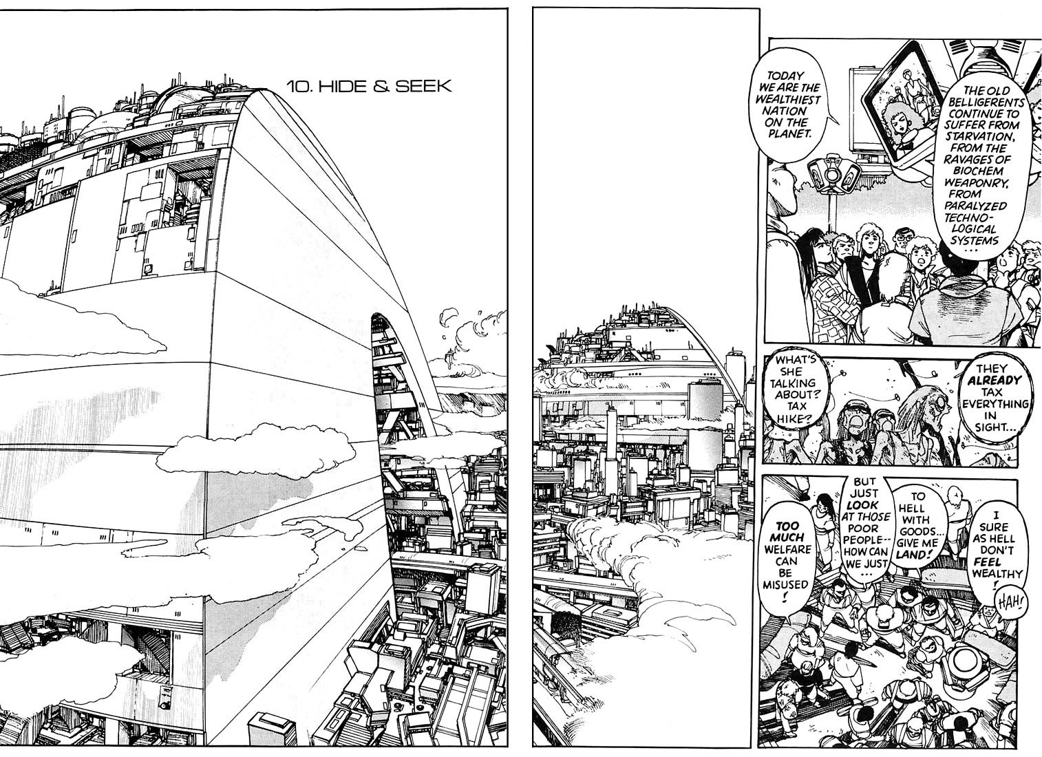 In 1989, Shirow created his most world famous work 'Kōkaku Kidōtai' ('攻殻機動隊', 'Ghost in the Shell', 1989-1990), published in Shūkan Yangu Magajin (週刊ヤングマガジ, Weekly Young Magazine). The overall concept was inspired by Arthur Koestler's novel 'The Ghost in the Machine', right down to the title. Set in the 21st century, the comic explores the adventures of a military police force who fight cyber crime. They are mostly preoccupied with cyborgs and computer hackers who are able to manipulate other people's brains. Luckily, the team can count on a cyborg of their own. Major Motoko Kusanagi is a young woman who was made into a cyborg after suffering a childhood accident. Her various digital skills work to the force's advantage. Yet, at the same time there is the question how much humanity is still left in her. Her robotic body may look feminine, but can't simulate menstruation. Her mind still ages, which makes her wonder whether she isn't just a "ghost in a shell". Thought provoking issues like these elevate 'Ghost in the Shell' beyond being a mere action-packed tale. It raises questions about the status of humans in an overly technological world. Like many mature manga, the story also features unshameful erotic fan service. One lesbian orgy scene was even removed from the first English translations for being "too explicit".