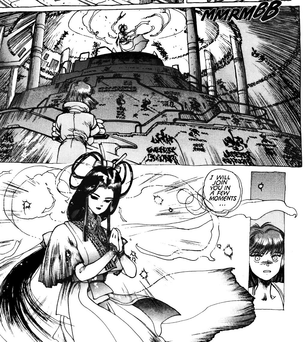 In 1991, Shirow drew 'Senjutsu Chōkōkaku Orion'('仙術超攻殻オリオン', 'Orion'), serialized in Comic Gaia. The manga stood out in his oeuvre by not being a cyberpunk story. The plot takes place in another galaxy, where 25 empires are part of The Galaxy Empire. One of these empires, the Great Yamato, wants to destroy all the negative karma through the use of a reactor. In order to stop him, the Fuze Clan calls in help from Susano, the warrior god of Destruction. What follows is an epic battle between the different galaxies, yet underlined with spiritual discussions, inspired by Buddhism and Taoism.