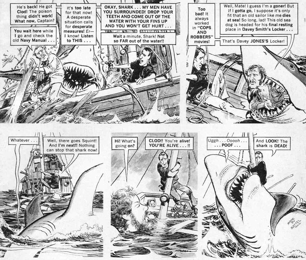 'Jaw'd', Siegel's parody of 'Jaws' (Mad #180, art by Mort Drucker, January 1976).