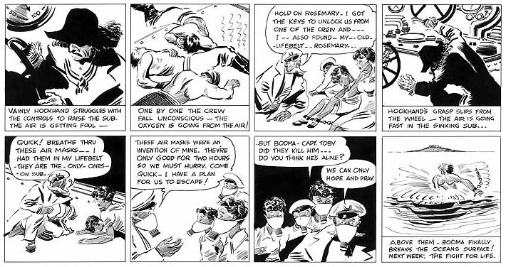 Simms Campbell additionally contributed to Cosmopolitan, The New Yorker, Sunday Pictorial Review, Opportunity Journal Of Negro Life and Ebony, and had his own weekly newspaper comic strips 'Little Mose' and 'Phantom Island' for the New York Amsterdam News syndicate from 6 April until 25 May 1940. His World War II cartoons were collected in the books 'Cuties in Arms' and 'More Cuties in Arms'. He had a long career with King Features Syndicate, that distributed his daily and Sunday 'Cuties' panels to newspapers from 1940 until 1971.