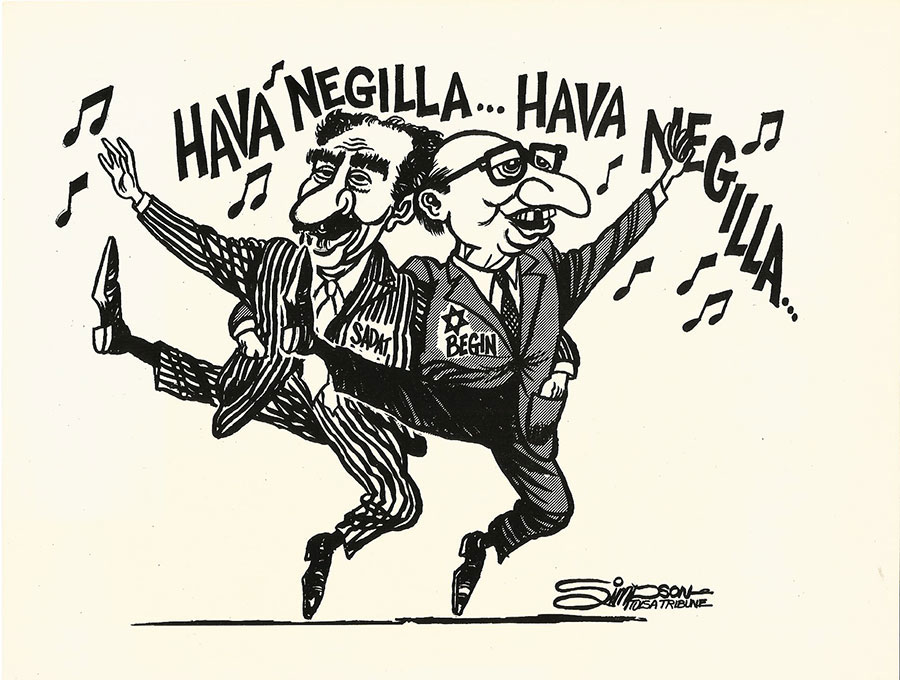 September 1978 cartoon from The Tulsa Times about the 1978 Nobel Peace Prize being awarded jointly to Egyptian President Anwar al-Sadat and Israeli Prime Minister Menachem Begin.