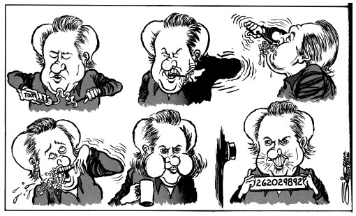 Mid-1970s sequential cartoon about former Oklahoma Governor David Hall, on his way to federal prison on bribery and racketeering charges for steering state pension funds to a favored banker.