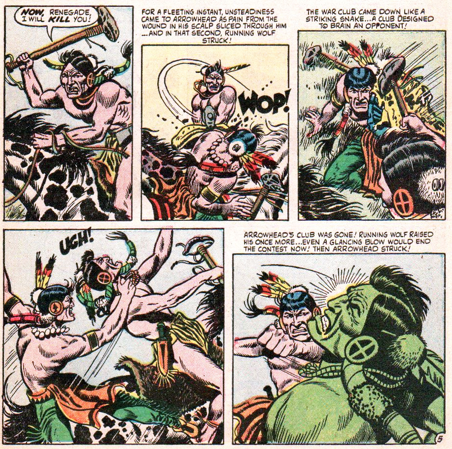 Somewhere in 1951, Sinnott decided to take the plunge and offer his service directly to Atlas editor Stan Lee in his Empire State Building office. It was the beginning of a long working relationship, which would last well into the 1990s. Like most artists at the Atlas/Marvel bullpen, Sinnott was handed random scripts every week. Since all the work was done anonymously, it is difficult to determine where his tenure started, and what he exactly did. Throughout the decade, Sinnott mostly penciled and inked his own stories, which appeared in the many genre-based anthology titles that dominated the comic book market back then. Sinnott worked on war, science fiction, horror, western and romance stories. These appeared in titles like 'Journey Into Mystery', 'Strange Tales', 'Marvel Tales', 'Uncanny Tales', 'Man Comics', 'Battle', 'Battle Action', 'Battlefield', 'Navy Combat', 'Frontier Western', 'Two Gun Western' and 'Secret Story Romances', but the young artist also contributed to 'Bible Tales for Young Folk'. Graphically, he co-created the Native American warrior 'Arrowhead' (1954) and the title hero of 'The Kid from Texas' (1957).