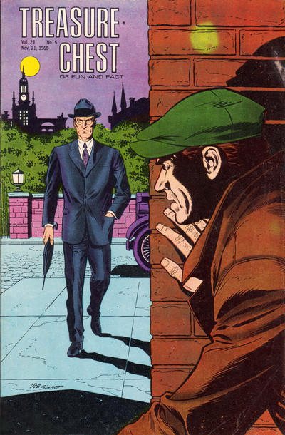 From 1961 to 1972, Joe Sinnott was also a productive artist for Treasure Chest, a Roman Catholic bi-weekly magazine distributed in parochial schools through publisher George A. Pflaum. He illustrated articles and comics about subjects like the French and Indian Wars, the gallbladder, hygiene and the life of Jesus Christ, but also serialized comics biographies like 'The Story of Pope John XXIII' (1962), 'The Story Of Bishop Walsh' (1963), 'Eisenhower the Man for the Moment' (1966) and 'Eamon de Valera: Hero of Ireland' (1968). Another regular comic series drawn by Sinnott was 'Archaeology the Greatest Detective Story' (1966) by F.E. Crandall, about ancient societies. Sinnott's Pope biography was reissued as a comic book by MSJT Publishing in 2015. With his Treasure Chest colleague Bob Wischmeyer, Sinnott also tried to pitch a newspaper strip about the athlete 'Johnny Hawk, All American', but they couldn't find a syndicate interested and the project was shelved.
