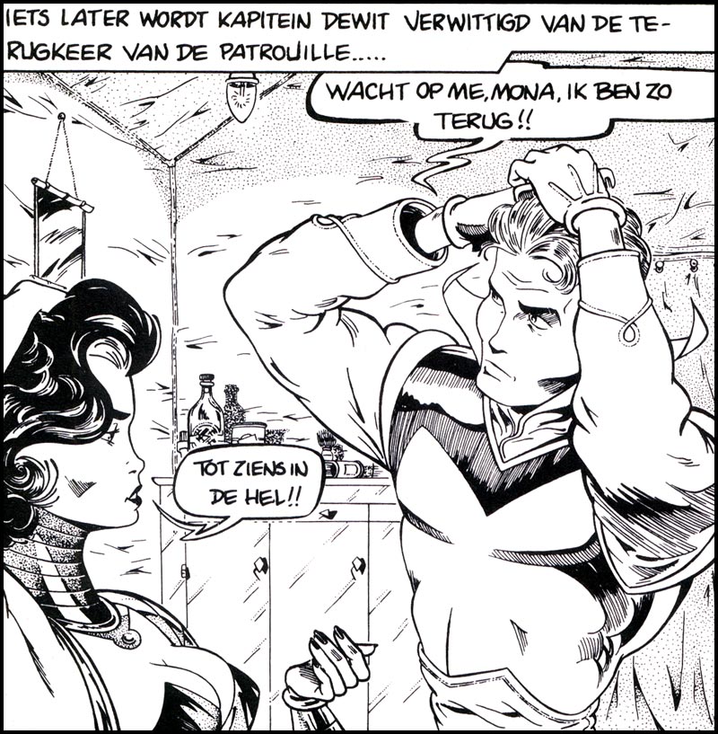In 1976, the two men also presented their work in Métal Hurlant, the groundbreaking French comic magazine by Moebius, Jean-Pierre Dionnet and Philippe Druillet. Sire offered an initial version of his comic series 'Bois Willys', but since the editors wanted science fiction material, Sire developed the hero 'Maurice Leblanc' instead. With no particular interest in sci-fi, Sire's only influences were Alex Raymond's classic space opera 'Flash Gordon' and American 1930s pulp novels, which resulted in his trademark retro approach. Adding to the pulp touch were the many naked women who demanded our hero's attention. Maurice Leblanc, no intentional reference to the author of gentleman thief  'Arsène Lupin', appeared in several short and longer stories, including the serials 'Planète Diabolique' (1977) and 'Grand Piège' (1978). They were collected by Les Humanoïdes Associés in the album 'Menace diabolique' (1979).