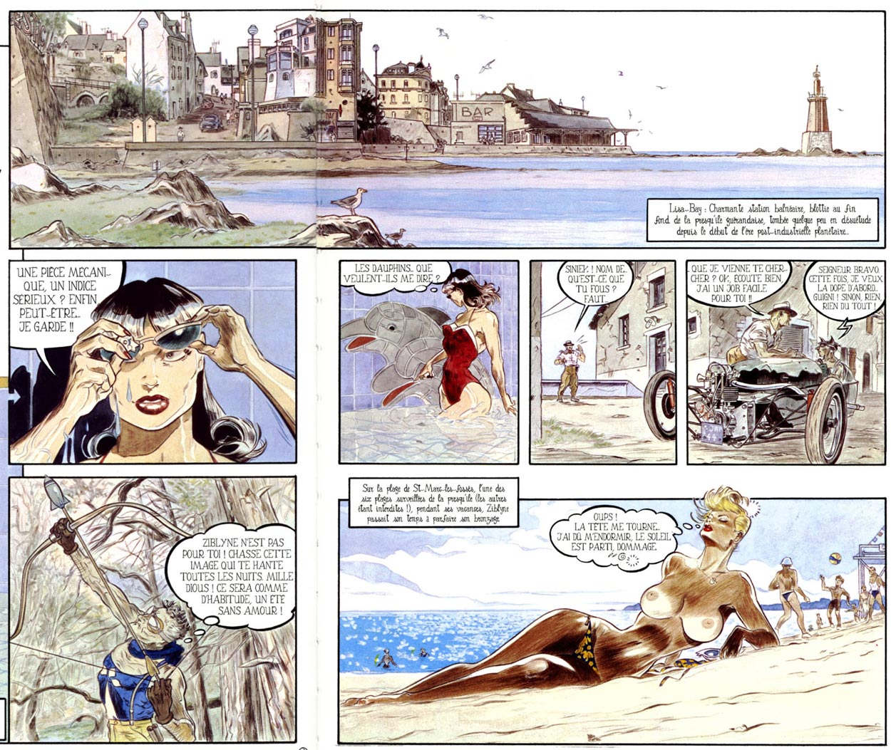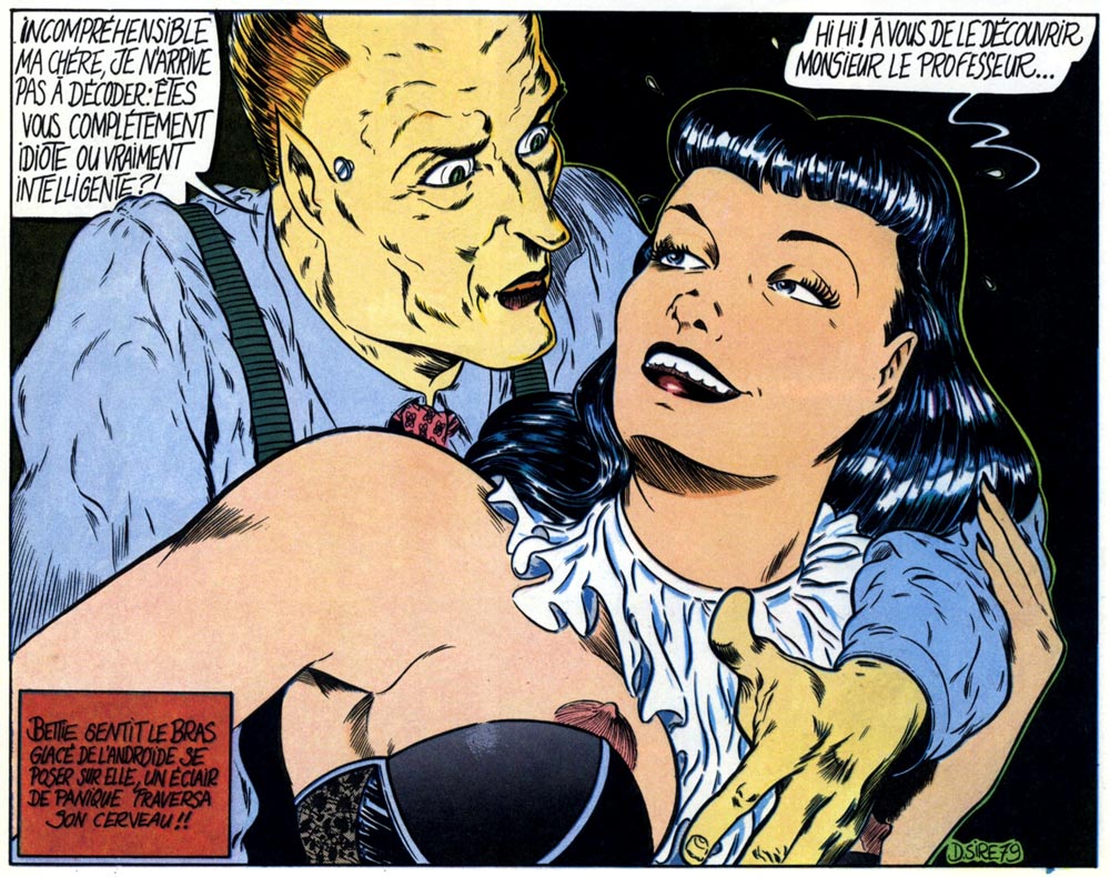 The rejected first story of Denis Sire's trademark series 'Bois Willys' was eventually published in L'Écho des Savanes #13 of 1977. The actual series eventually did find a spot in Métal Hurlant, debuting in issue #44 of 1979 and running as short stories until 1981. It's main star was modeled after popular 1950s pin-up and bondage model Bettie Page, five years before Dave Stevens used her appearance in his 'The Rocketeer' comic books. In a 2002 interview with Jean Depelley, Sire recalled he had a true revelation after discovering a book series with Page photographs by Irving Klaw. The atmosphere of the 1950s and bondage have remained recurring elements in his oeuvre. 'Bois Willys' was also collected in book format by Les Humanoïdes in 1981. Bettie and her co-star, the voluptuous blonde Ziblyne, returned for a new story cycle set in the seaside town Lisa Bay, collected in the book 'Lisa Bay' (1985). Denis Sire redrew a large part of his original 'Bois Willys' stories for the re-edition 'Ziblyne et Bettie' (Les Humanoïdes Associés, 1992). 'Lisa Bay' was reprinted under the title 'L'Héritage' by Albin Michel in 2006.
