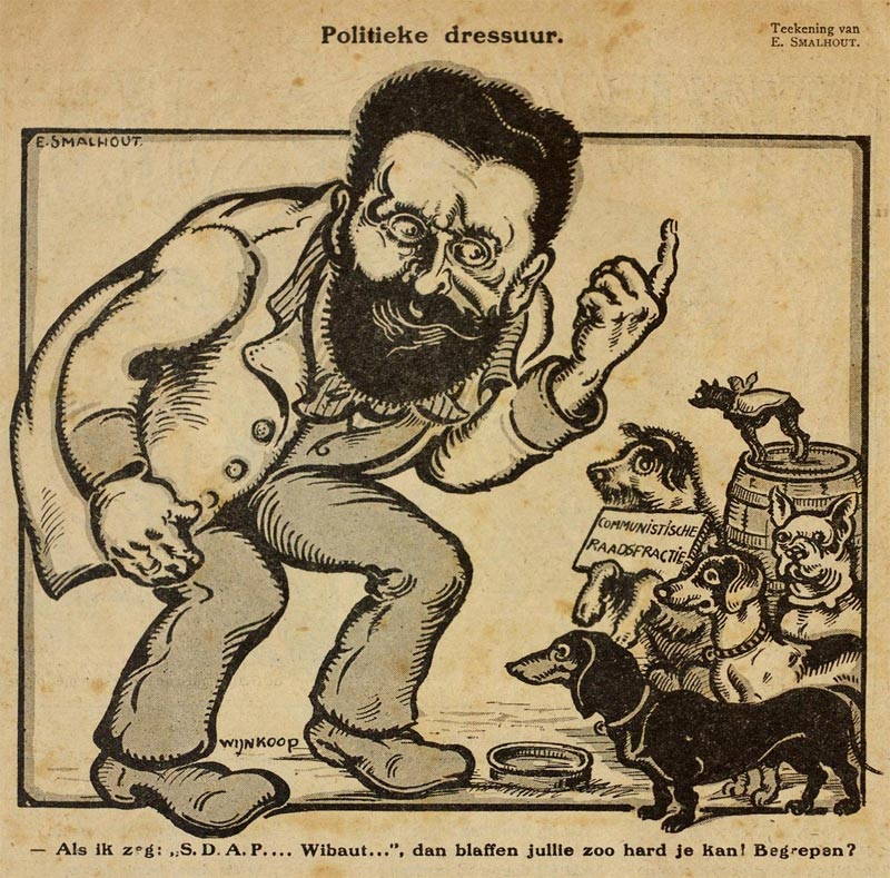 Political cartoon starring communist party leader David Wijnkoop (1910s?).