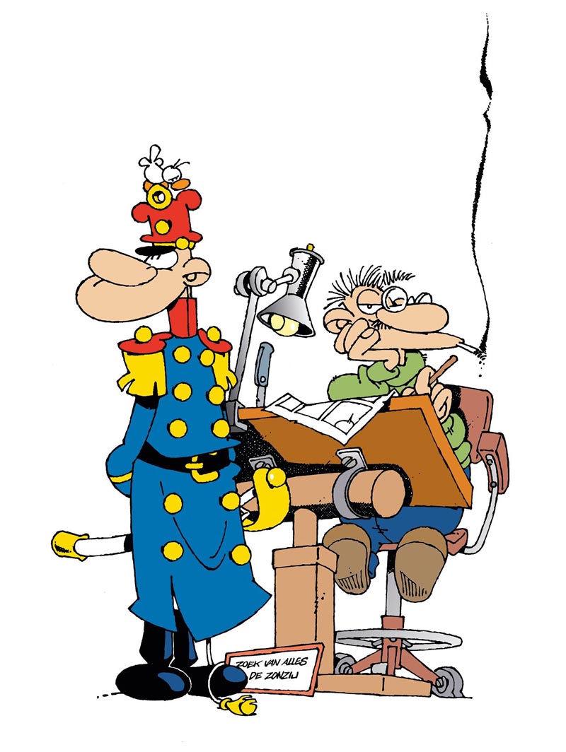 In a 1973 interview with comics news magazine Stripschrift, De Smet said he wasn't sure if he could continue 'De Generaal' for much longer, as it threatened to become repetitive. After all, the entire series was based on running gags. Yet readers loved it and editors kept requesting new episodes. 'De Generaal' continued his ill-fated invasions for more than 26 years (!), albeit sometimes with longer intervals. It remained a mainstay in Pep, even when the magazine changed its name into, respectively, Eppo, Eppo Wordt Vervolgd, Sjors & Sjimmie Stripblad and SjoSji. It also appeared in the short-lived magazine Titanic. The adventures of De Generaal were collected in 14 albums, first by Oberon and then by Big Balloon. Only one album was translated into French, 'Le Général', published by Septimus in 1977. Two albums appeared in Danish ('Den General', 1980, 1988), and three in German ('Der General', 1990-1991). Some early episodes were reworked into a short-lived newspaper strip, which appeared in local newspapers like Leidsch Dagblad in 1975-1976.