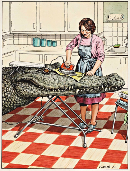Solé also took over the series 'Superdupont' after the death of Alexis in 1978 (scripts by Lefred Thouron and Gotlib), and created the series 'Salle des Machines'. He was also a regular cover artist for L'Écho des Savanes from 1974, and he also made the comic story 'Le Plombier Maudit' for this magazine. Later on in his career, Jean Solé has focused on making illustrations for the press (Le Point, L'Express, La Vie Ouvrière), posters and books (the Vents d'Ouest collection Astrorire).