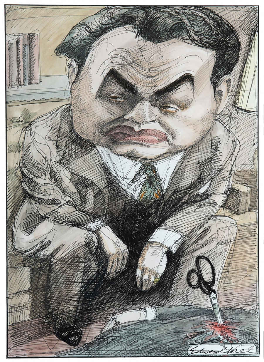 Sorel nevertheless kept caricaturing Hollywood stars for other magazines. He admitted having more awe for the actors he grew up with in the 1930s and 1940s, who seemed "larger than life", than those from later generations. His personal favorite was a portrait he made of Edward G. Robinson for The New Yorker, based on a scene from 'The Woman in the Window' (1944). He felt it turned out exceptionally well and he also received many requests from readers afterwards who wanted to buy the original. Interviewed by Randy Cohen for PersonPlaceThing (12 March 2022), Sorel said that "if I was a pharaoh, I would want that caricature to be buried with me."
