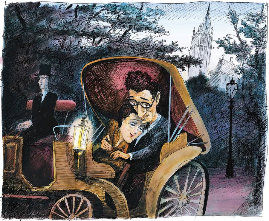 Sorel was intrigued by this scandal and kept reading more about Mary Astor in the following decades. He discovered that the actress suffered from a dominant father who, even in her adulthood kept trying to limit her liberty. This all had an effect on her personality and Sorel observed that she made many terrible mistakes in her life, particularly in her love life, picking out partners that were just as controlling and violent as her father. This all culminated in Sorel's self-written and illustrated book: 'Mary Astor's Purple Diary: The Great American Sex Scandal of 1936' (Liveright Publishing, 2016). The reason he made it so late in his career was because he finally had more free time when magazine and advertising art commissions started to dry up and felt the time was finally ripe. The original draft was a straightforward retelling of Astor's lifestory, but one of the assistant editors of his publisher advised him to put himself in the narrative too. Once Sorel added this autobiographical element, the story became more fun to make. Creatively satisfying, he felt the book was even the highlight of his entire artistic career. One of the people who gave it an enthusiastic review was Woody Allen, who named it a "terrific book (...) with (...) wonderful caricature drawings. Who would figure that Mary Astor's life would provide such entertaining reading, but in Sorel's colloquial, eccentric style, the tale he tells is juicy, funny, and in the end, touching."