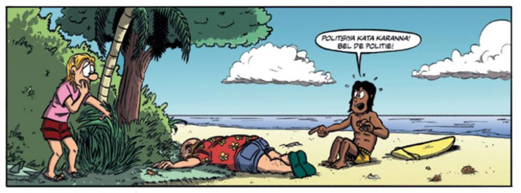 In March 2019, Dennis Spaans made his official debut with a full-length adventure comic, 'Ray Penna Mysteries: Moord in Jungle Bay' (Syndikaat, 2019). The plot dealt with a young surfer who becomes part of a murder investigation in 1980s Sri Lanka. The story was based on a novella by a friend of the cartoonist, Perren Pengelly. One year later, his cartooning activities branched out with regular comic strips in magazines. For Defensiekrant, a bi-weekly publication of the Ministry of Defence,  Spaans makes the comic strip 'Roy Geeft Acht!' (May 2020- ), about a clumsy defense officer. A specialist in cyber security, Dennis Spaans proposed his infotainment comic feature with the cyber-savvy girl Fred to the popular science monthly for children Zo Zit Dat. Between December 2020 and December 2023, 'Cyberwijzer' appeared as a regular feature in this magazine, playfully teaching children of the digital age how to be safe online.