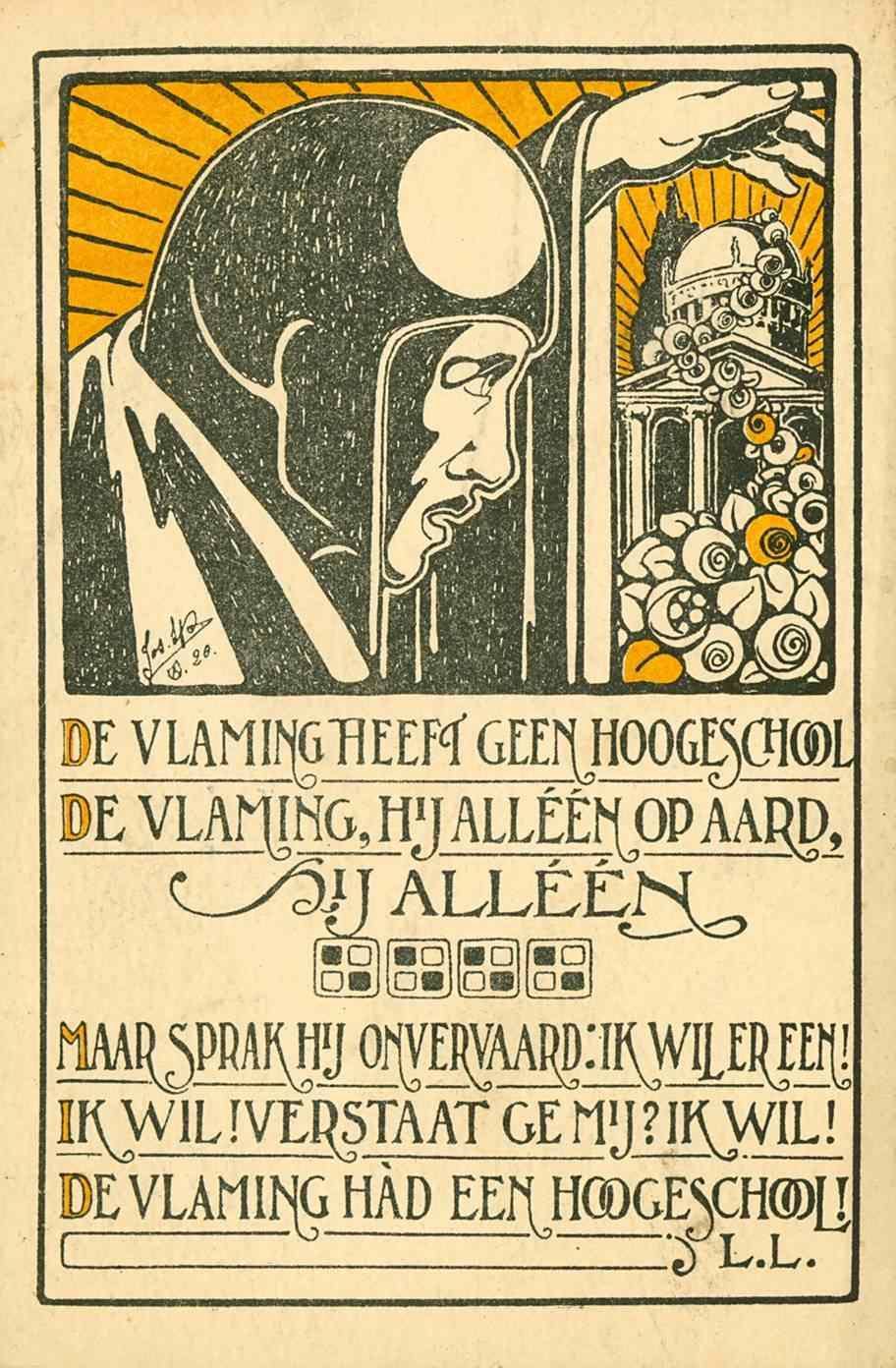 During the 1920s and 1930s, the Flemish civil right movement accelerated, with both left-wing and right-wing parties campaigning. In many fields they achieved successes, such as the acceptance of Dutch as the official language at the Ghent University (1930) and new laws establishing the language of the region as its official language (1932). As a fighter for this movement, Speybrouck created much Flemish nationalist propaganda for these purposes. In 1919, he decorated the poster for the festivities commemorating poet Albrecht Rodenbach in his birth town Roeselare. He was a regular contributor to the Flemish nationalist magazine Storm and its sister magazine Gudrun, which aimed at a female demographic. He also designed logos for De Blauwvoet (magazine of the Flemish Catholic student association AKVS, Algemeen Katholiek Vlaams Studentenverbond), De Volksmacht (the official publication of the Christian labor union, department West-Flanders) and the Catholic magazine Hoger Leven.