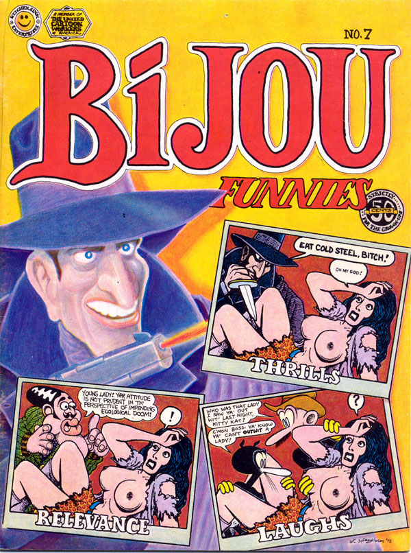Early Spiegelman covers: Left, The East Village Other (2 April 1969), Right, Bijou Funnies #7 (November 1972).