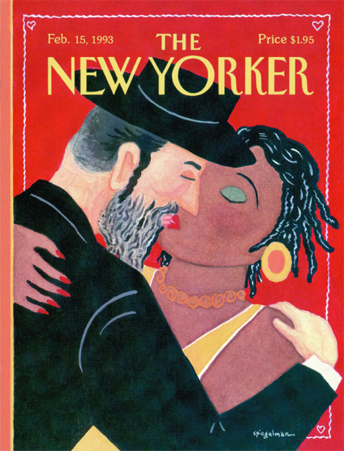 Controversial Spiegelman covers for The New Yorker: left, 'Valentine's Day' (15 February 1993), right, 'Theology of the Tax Cut' (17 April 1995).