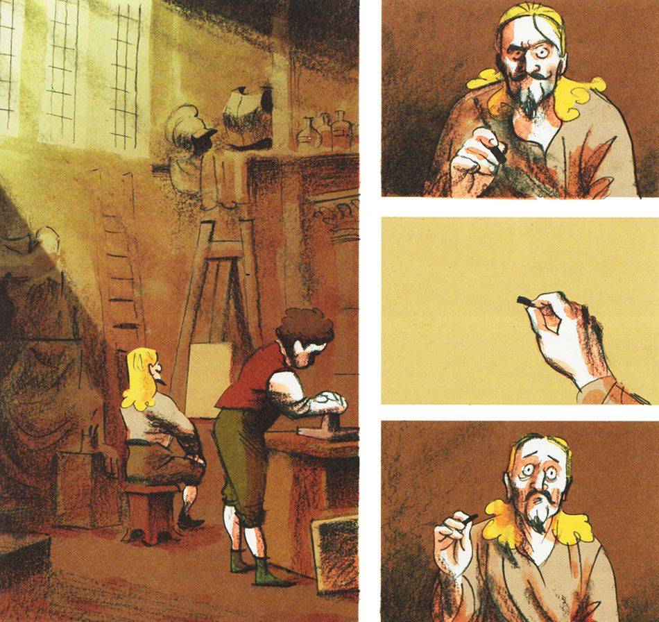 Spruyt's next graphic novel, 'Bouvaert - Elegie Voor Een Ezel' (Blloan, 2019), is set in the 17th century, and focuses on a painter clearly modelled after Peter Paul Rubens. Interviewed by Ivan Put (BRUZZ.be, 7 April 2021), Spruyt said he was well aware that he could probably improve the international marketability if he had made the story directly about Rubens, but to him "that's what I find funny." Interviewed by Mario Stabel (Stripspeciaalzaak, 2019), Spruyt said that he didn't like the idea of a direct biopic in comic book form, because "it's usually a dishonest mixture between fact and fiction." Instead, 'Bouvaert' centers on the fictional painter Jan Bouvaert who manages to become rich and respected, while his brother Pieter struggles to make a name for himself and is overshadowed by his brother's success. The book pokes fun at the baroque period, which Spruyt describes as "propaganda art, mixed with dirty men who like to see half-naked women. I enjoy destroying that illusion." 'Bouvaert' was also translated into French by Casterman.